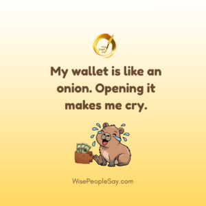 “My wallet is like an onion. Opening it makes me cry.” WisePeopleSay Giggles, Grins & Good Vibes Smile More I wish everything If You Think Nothing Is Impossible My Wallet Is Like an Onion I’m Not Arguing You’re Not Pizza I’m on a seafood diet I’m not lazy I followed my heart Smile while you still have teeth Exercise? Sharing is Caring!