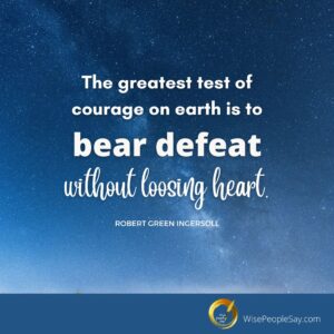 “The greatest test of courage on earth is to bear defeat without losing heart.” Robert Green Ingersoll Courage after defeatđź’Ş Real courage isn’t just about winning—it’s about how we respond when we lose. Life will bring setbacks, failures, and disappointments. But true strength is shown when we keep going, even with a heavy heart. Staying hopeful after defeat takes more bravery than facing challenges at our best. It’s in those low moments that our character shines the most. To bear defeat without losing heart means choosing faith over fear, and hope over despair. It means learning from what went wrong and standing back up with grace. Defeat is not the end—it’s a part of the journey that builds us. Every failure becomes a step toward wisdom, strength, and growth. Courage is holding on, even when everything feels lost. Sharing is Caring!